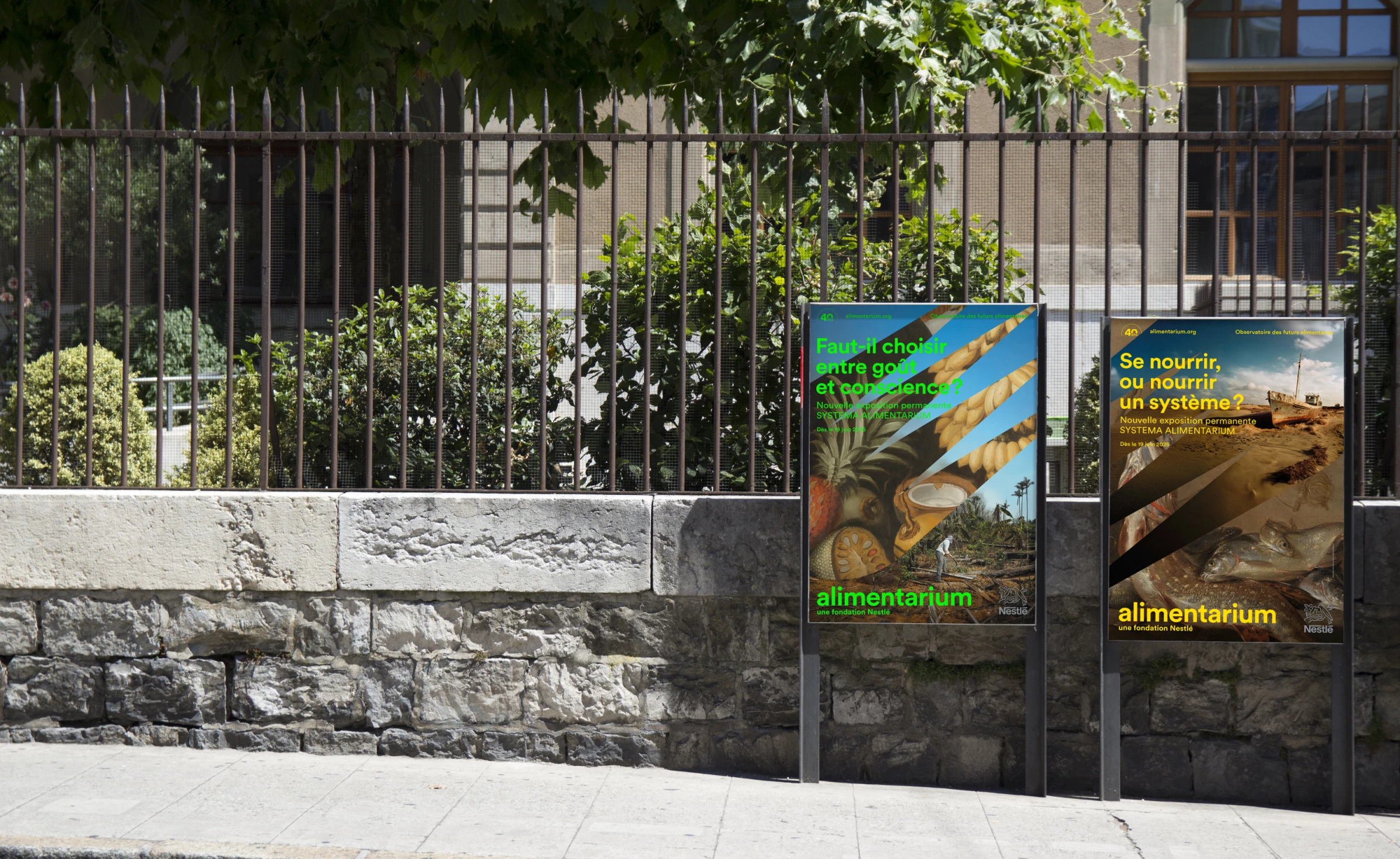 En concevant son nouveau positionnement visuel, pensé pour traduire la richesse et la complexité de ce thème universel, nous avons choisi de nous appuyer sur un symbole fort : la fourchette dressée face au musée. Élément emblématique et incisif de l’identité de l’institution, elle devient, au travers d’un système graphique dédié, le fil conducteur de cette nouvelle expression visuelle.