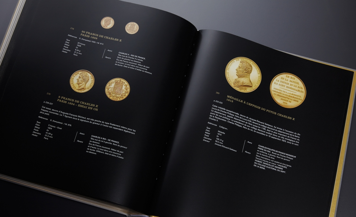 Le cabinet numismatique de Stéphane Barbier-Mueller désirait réaliser un ouvrage mettant en scène la plus grande collection privée de monnaies et médailles de l'histoire de France. Une des particularités qui rend ce livre unique st le choix de photographier certaines pièces comme de l'horlogerie, en très gros plan, et qui permet de sentir la matière et les détails. Cet ouvrage compte plus de 500 pages et a été entièrement réalisé en Suisse.