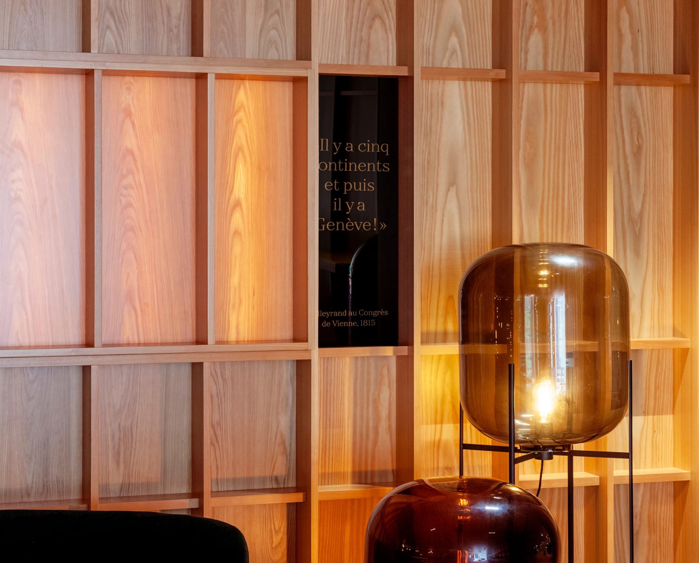 Dans le contexte de l'avancement du projet de signalétique pour le CICG, nous avons été engagés dans la conceptualisation identitaire des zones de repos et de restauration. Notre réflexion nous a conduits à créer des noms suggestifs, reflet des opportunités de rencontres internationales offertes par l'environnement du Centre International de Conférence de Genève.