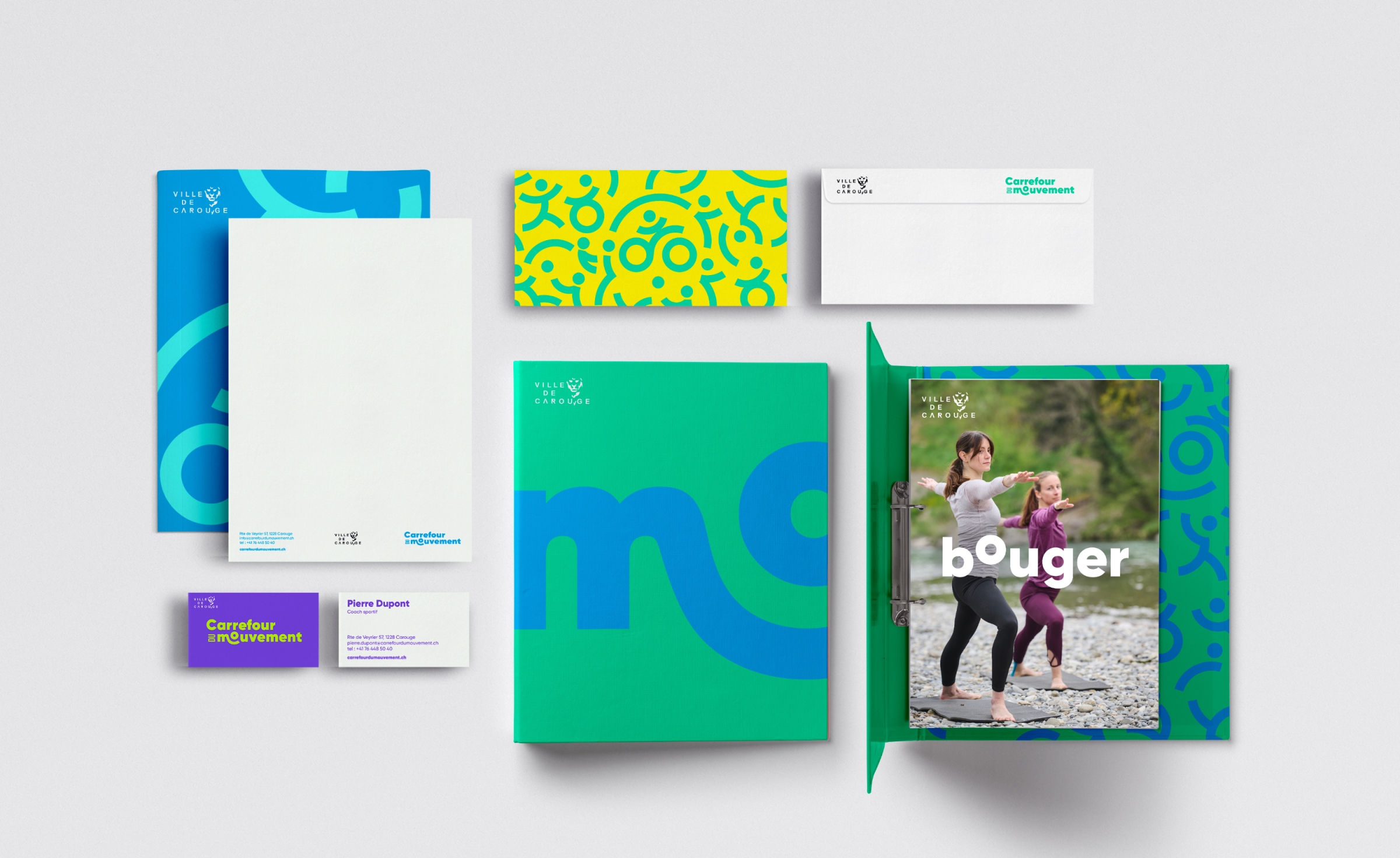 Le Carrefour du mouvement est un espace de sport, de détente et de loisirs animé par la Ville de Carouge. A deux pas de l’Arve, ce vaste parc accueille une foultitude d’activités pour les jeunes et moins jeunes. Autant d’occasions pour décompresser, se dépenser et faire de nouvelles rencontres dans une ambiance multigénérationnelle. L’agence a développé une identité joyeuse et tonique, qui se décline en affiches, brochures, décors muraux et contributions sur les réseaux sociaux.