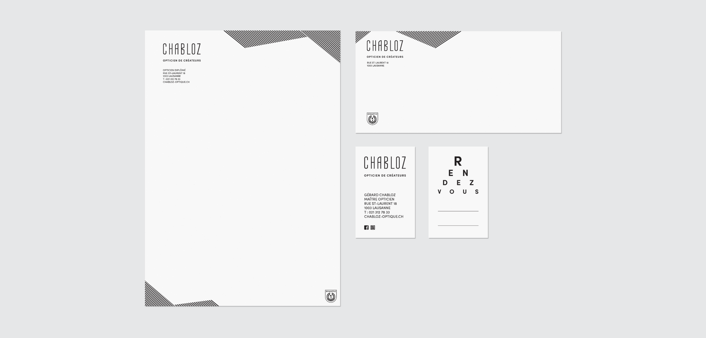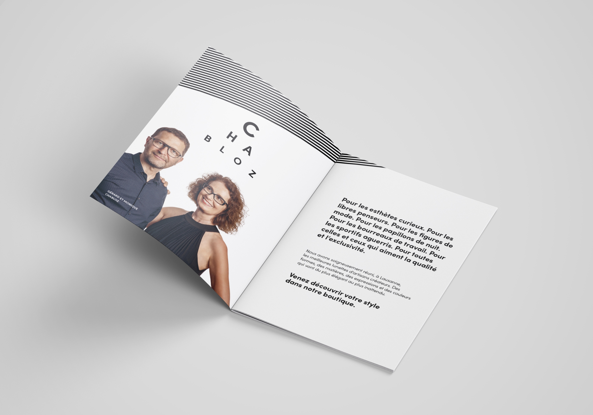 L'entreprise familiale Chabloz optique avait à cœur de rafraîchir son image. Nous les avons accompagnés dans cette démarche en réalisant une nouvelle ligne graphique plus contemporaine et un principe visuel appliqué aux images.