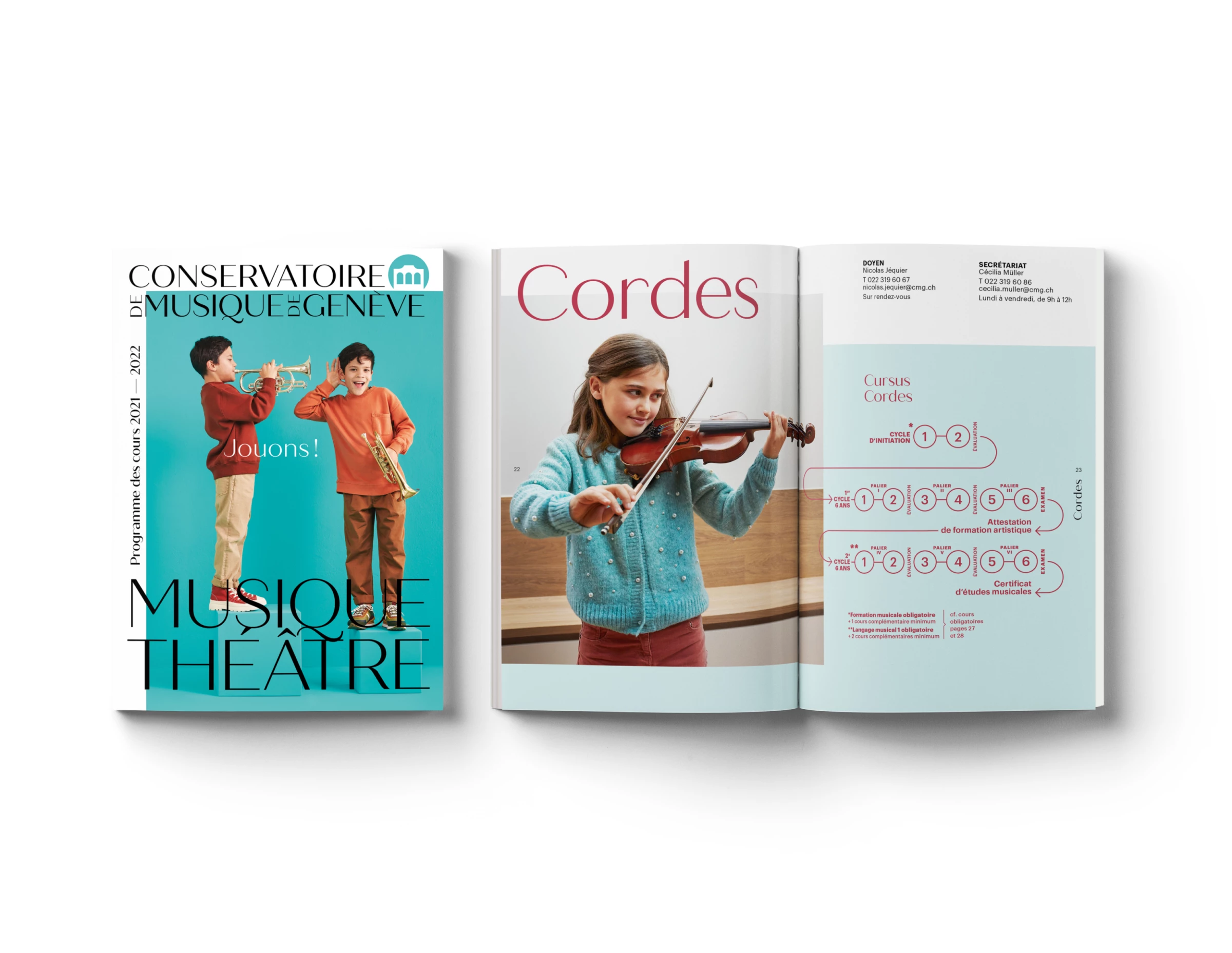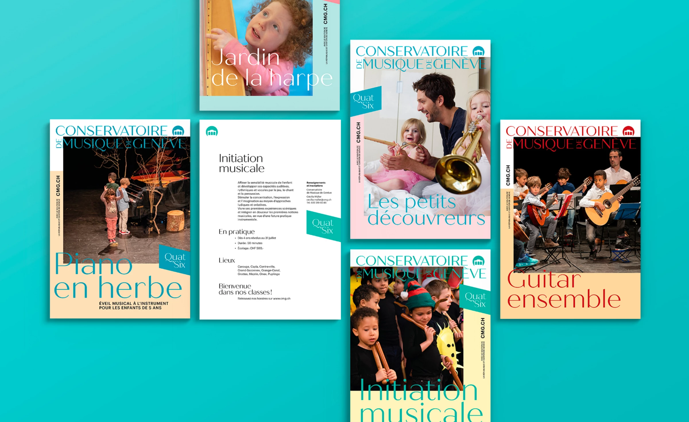 Le Conservatoire de musique de Genève a décidé de repositionner sa marque. Nous l'avons accompagné et conçu une communication qui met en avant le plaisir de faire et la joie d'apprendre. Le logo et la ligne graphique ont également été repensés.