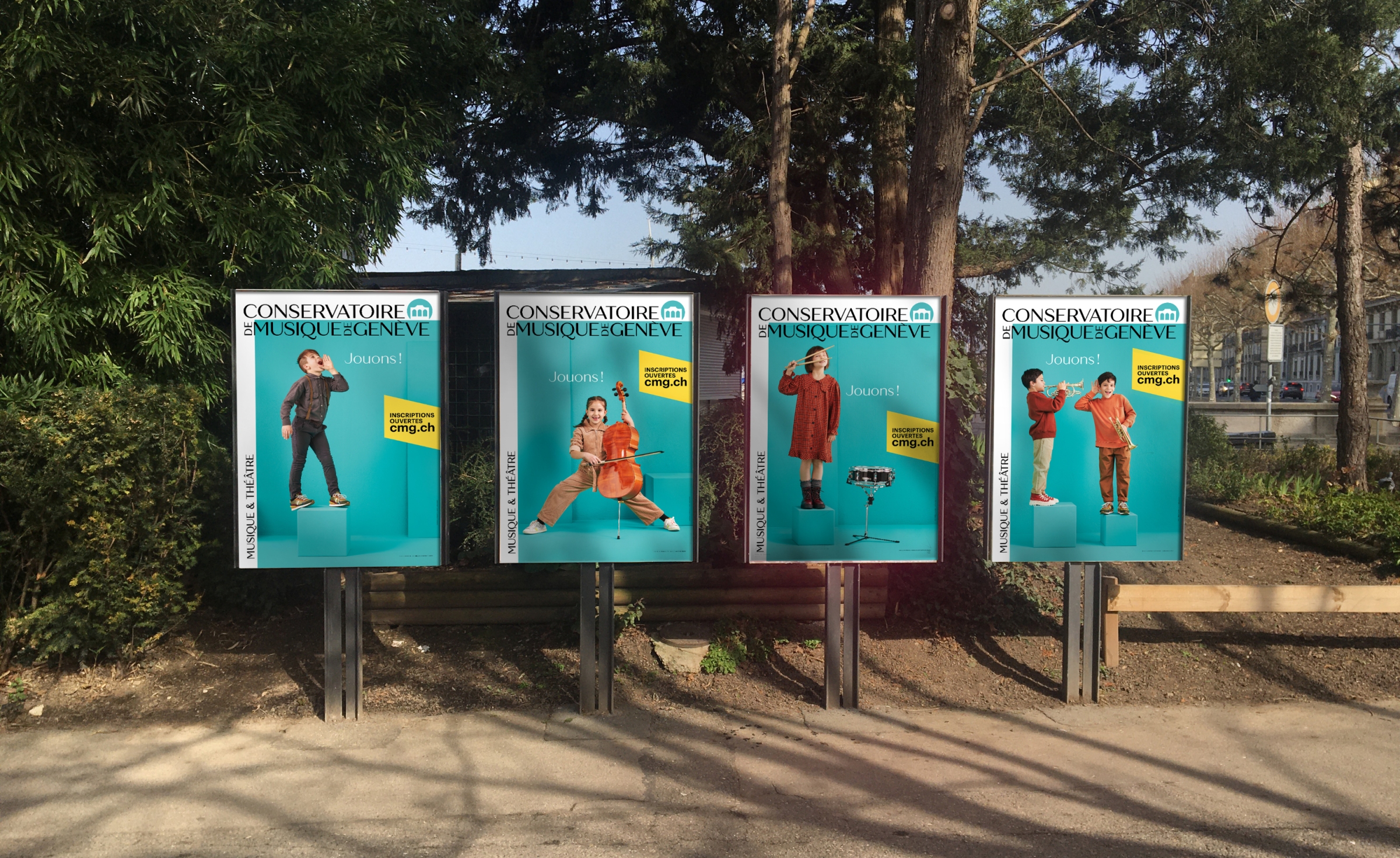 Le Conservatoire de musique de Genève a décidé de repositionner sa marque. Nous l'avons accompagné et conçu une communication qui met en avant le plaisir de faire et la joie d'apprendre. Le logo et la ligne graphique ont également été repensés.
