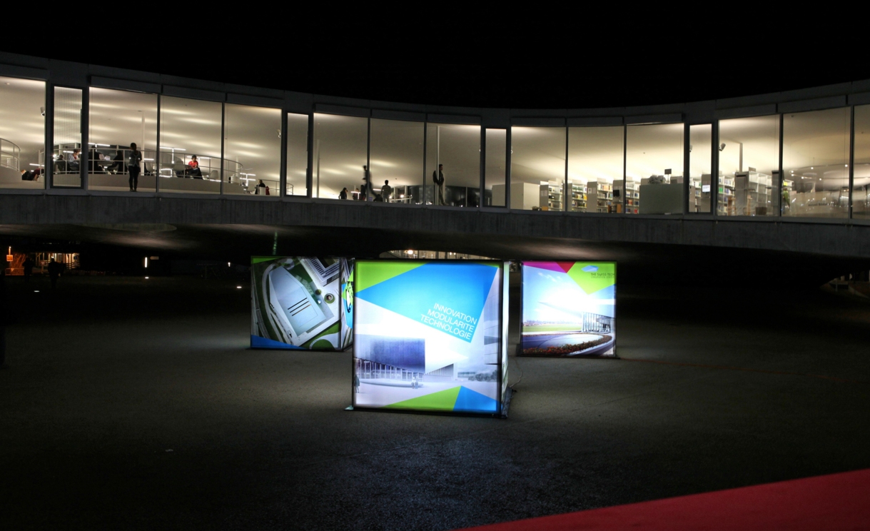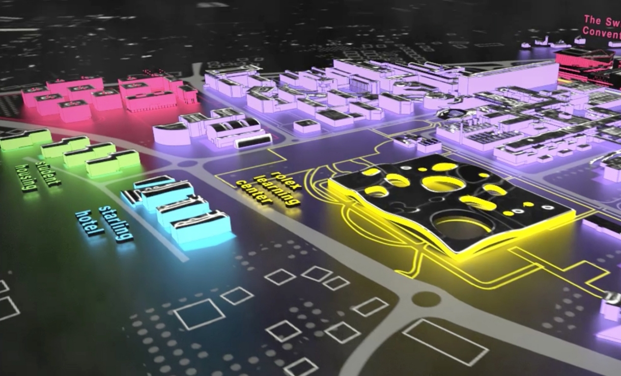 Avant la construction de son centre de convention, le Swiss Tech Convention Center, l'EPFL avait la nécessité d'avoir des outils lui permettant d'en faire la promotion à l'international. Inspiré par la forme très caractéristique du bâtiment et par sa modularité, le logo est déclinable en différentes formes et couleurs. Divers supports de communication ont été réalisés, toujours sur ces mêmes principes.