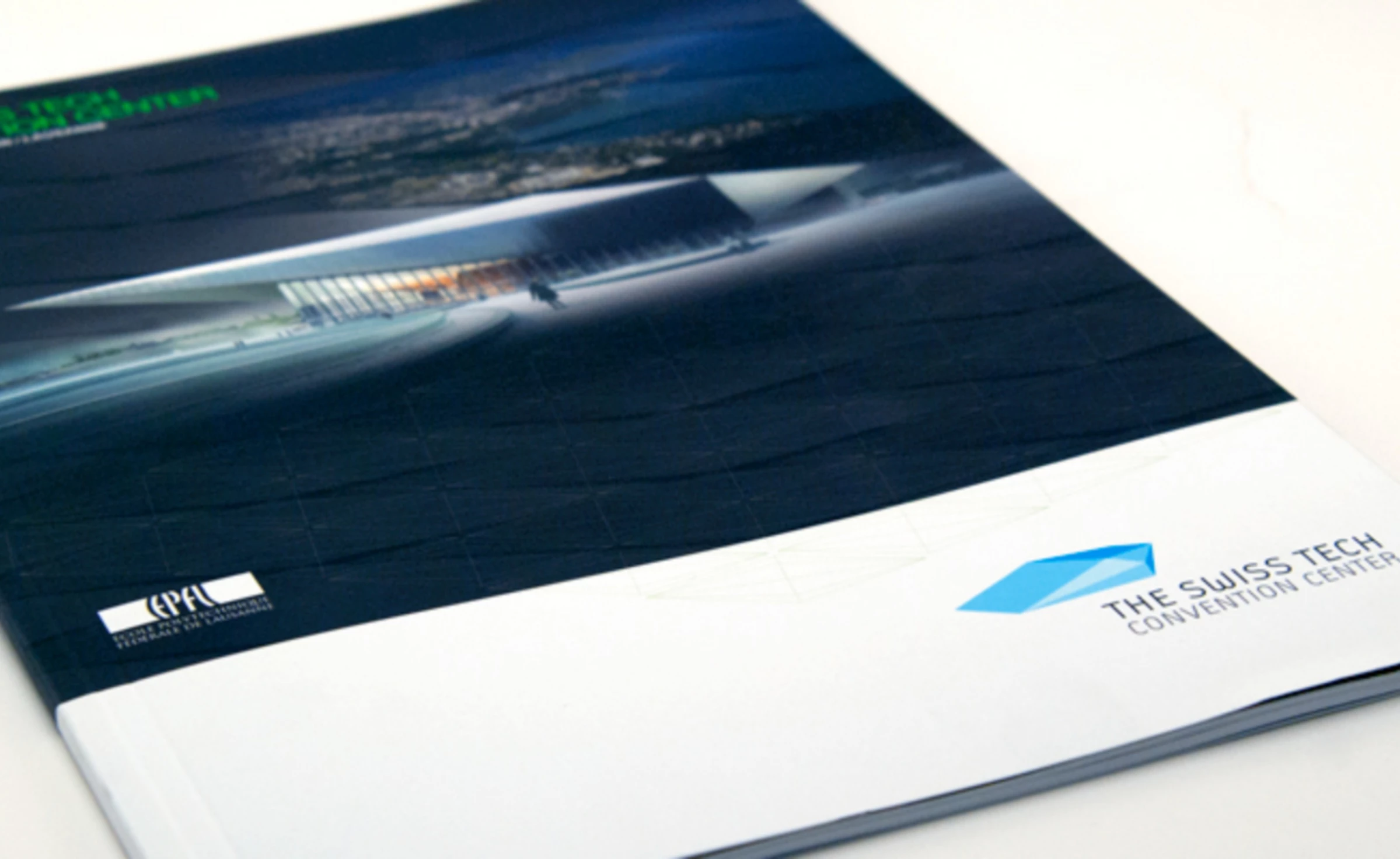 Avant la construction de son centre de convention, le Swiss Tech Convention Center, l'EPFL avait la nécessité d'avoir des outils lui permettant d'en faire la promotion à l'international. Inspiré par la forme très caractéristique du bâtiment et par sa modularité, le logo est déclinable en différentes formes et couleurs. Divers supports de communication ont été réalisés, toujours sur ces mêmes principes.