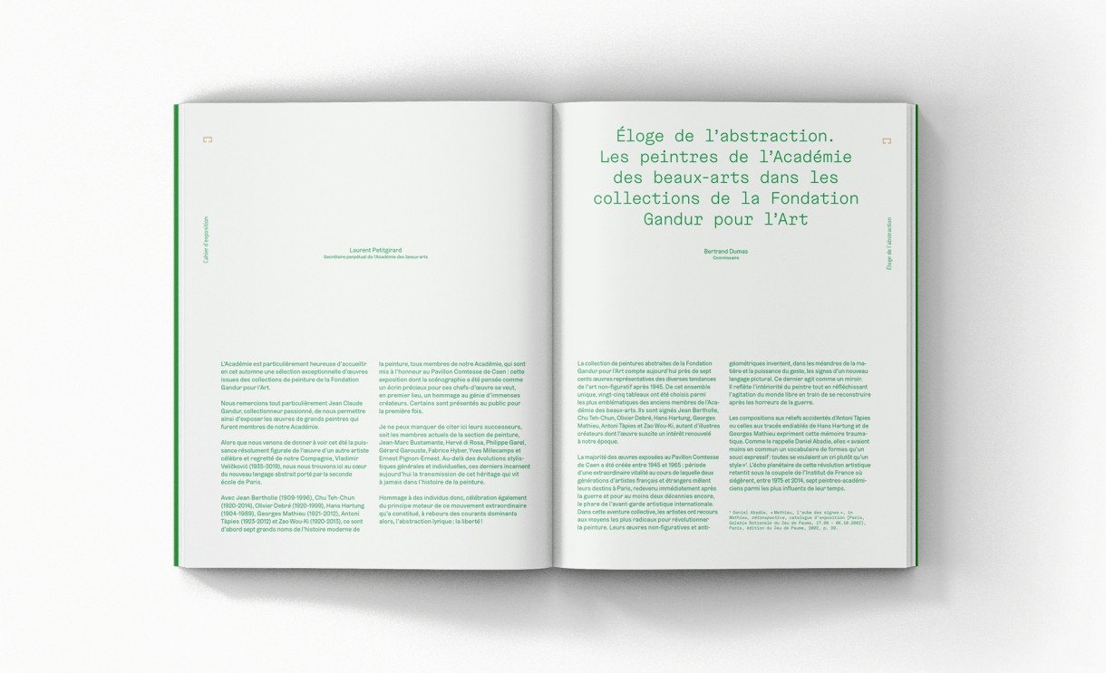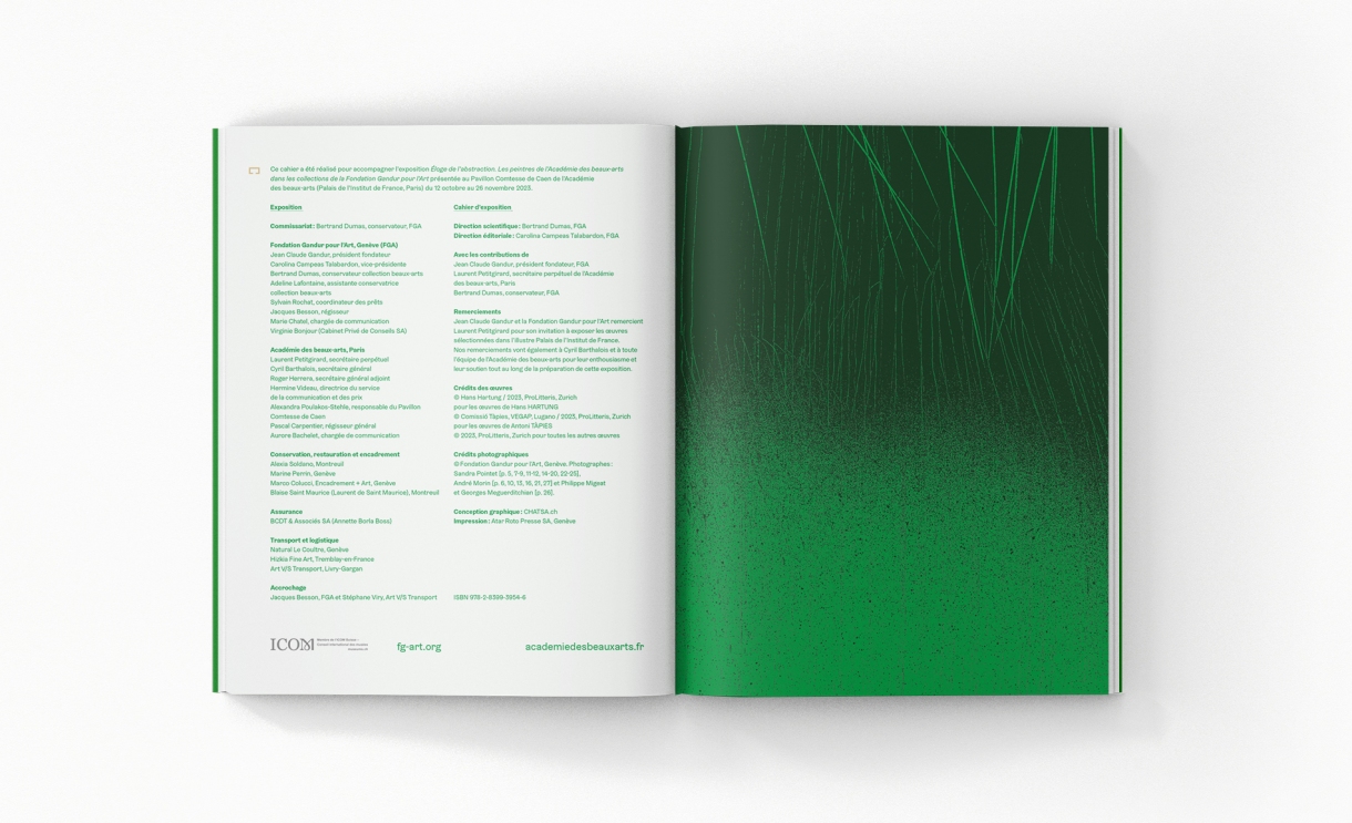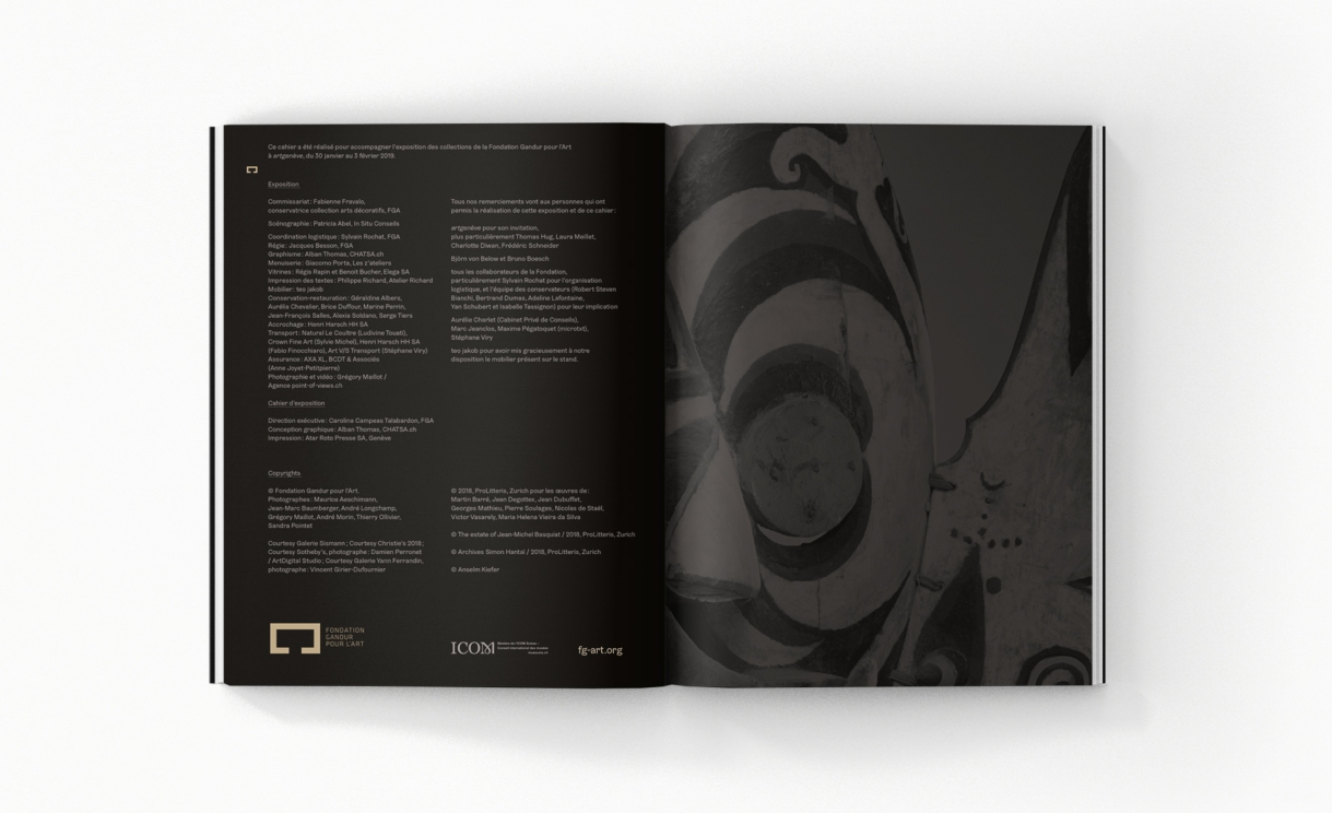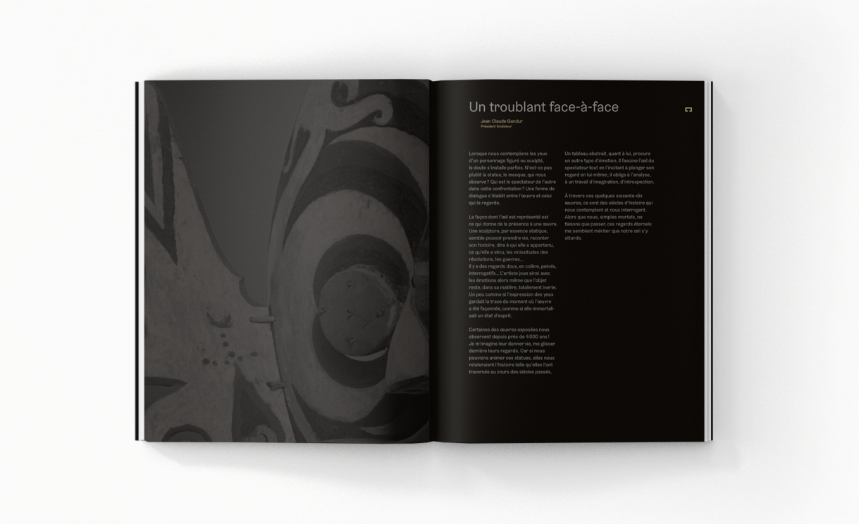 Pour accompagner la Fondation Gandur pour l’Art lors de certaines expositions, nous avons élaboré une ligne éditoriale spécifique qui s’intègre et complète les éléments de communication existants, renforçant ainsi l’échosystème des publications diffusées.