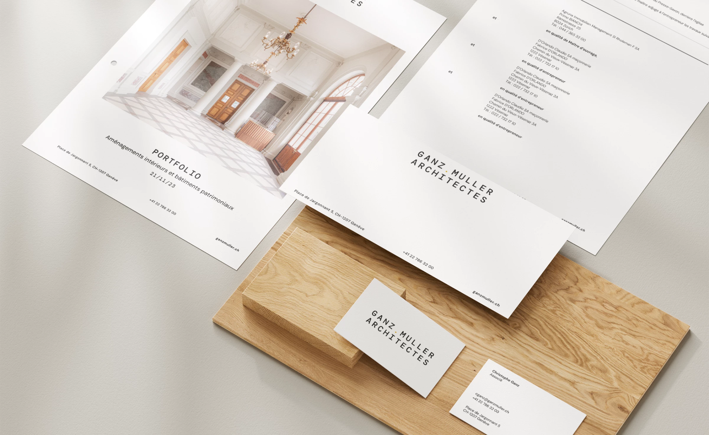 La refonte de l’identité visuelle de Ganz Muller marque une volonté claire de retour à l’essentiel. Elle se traduit par la suppression de l’acronyme au profit de l’affirmation pleine des noms des fondateurs, réinscrivant le bureau dans la continuité de son histoire. Ce recentrage exprime l’ancrage dans une architecture ouverte, contextuelle, sur mesure et résolument créative.