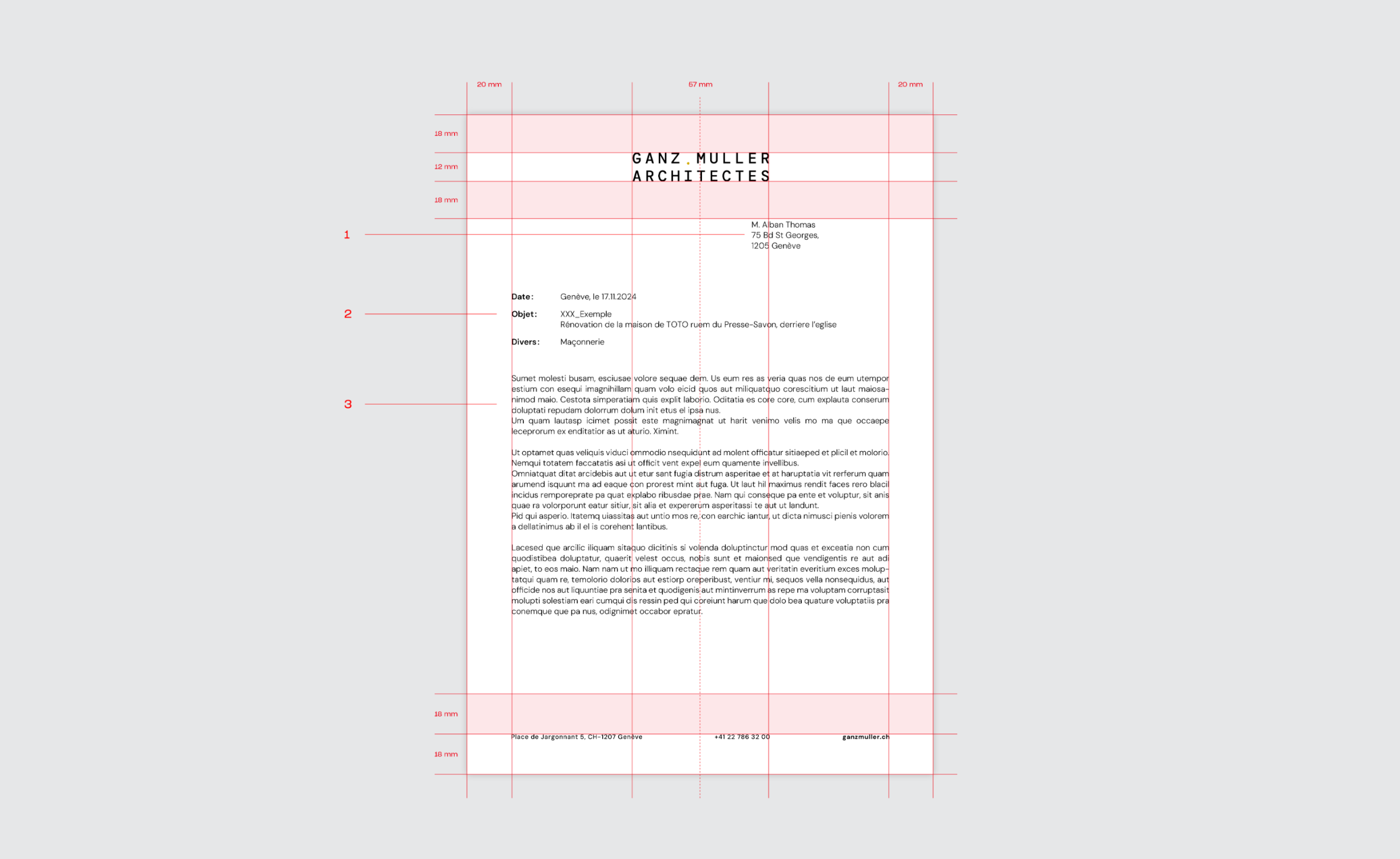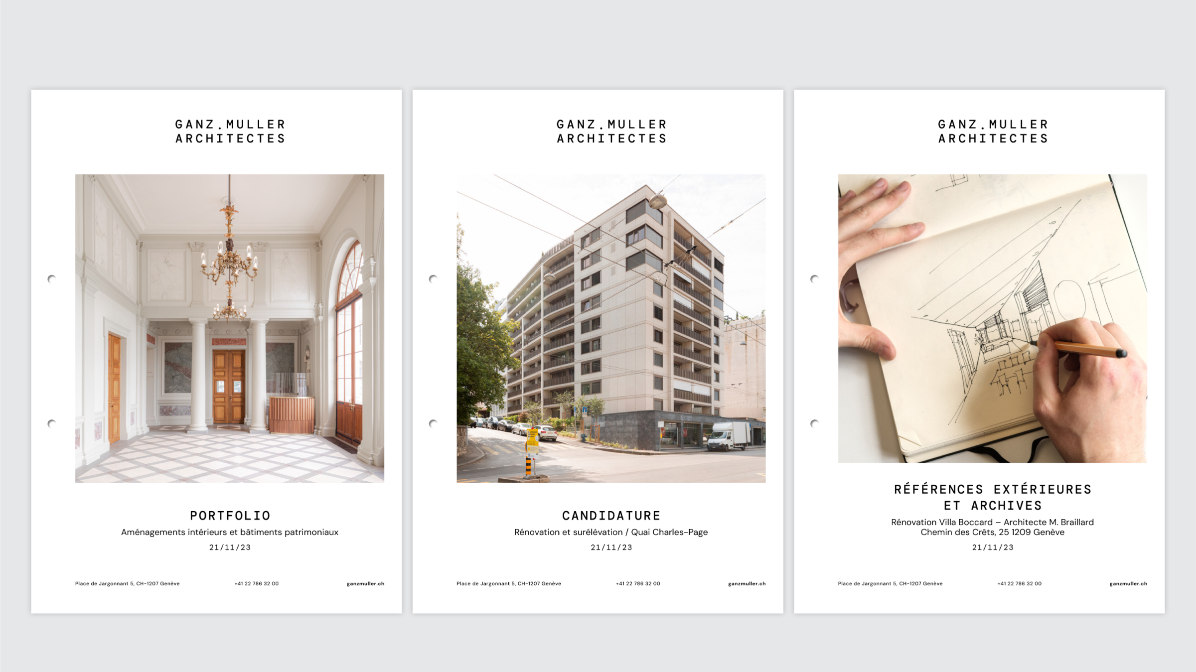 La refonte de l’identité visuelle de Ganz Muller marque une volonté claire de retour à l’essentiel. Elle se traduit par la suppression de l’acronyme au profit de l’affirmation pleine des noms des fondateurs, réinscrivant le bureau dans la continuité de son histoire. Ce recentrage exprime l’ancrage dans une architecture ouverte, contextuelle, sur mesure et résolument créative.