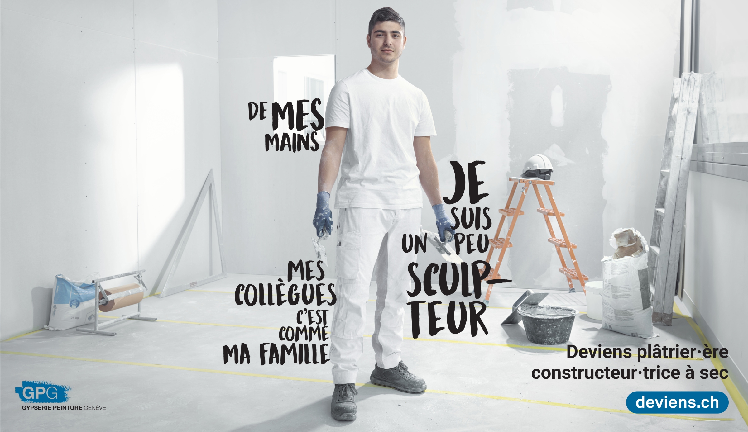 Les métiers de la peinture et de la plâtrerie peinent à recruter, malgré des atouts qui méritent d’être connus: autonomie, esprit d’équipe, satisfaction de voir le résultat de son travail et des journées qui se terminent tôt. Ce sont ces aspects positifs, idéaux pour des jeunes en quête d’indépendance et de plaisir professionnel, que nous avons voulu mettre en avant dans cette campagne de recrutement d’apprenti·e·s.