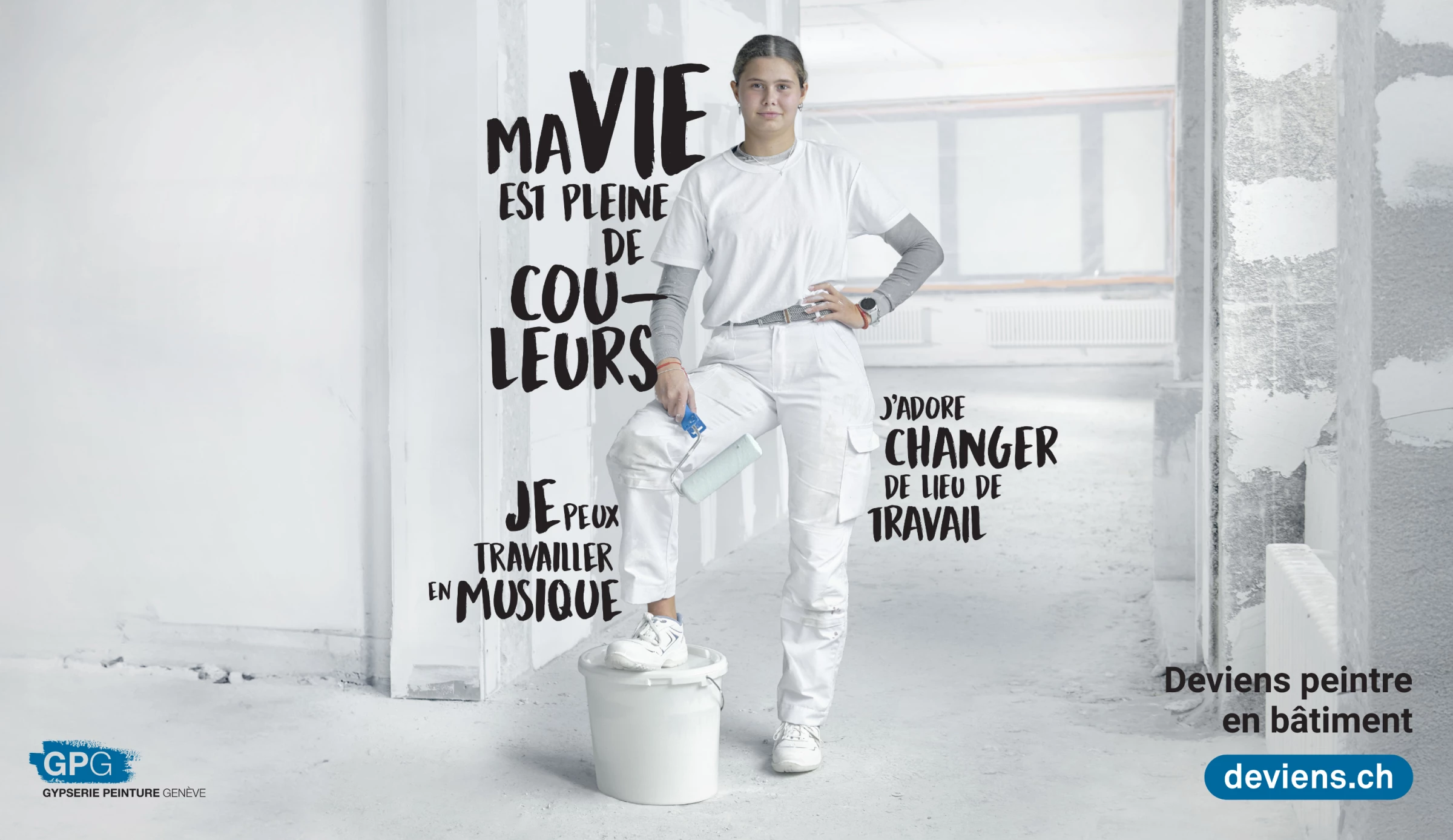 Les métiers de la peinture et de la plâtrerie peinent à recruter, malgré des atouts qui méritent d’être connus: autonomie, esprit d’équipe, satisfaction de voir le résultat de son travail et des journées qui se terminent tôt. Ce sont ces aspects positifs, idéaux pour des jeunes en quête d’indépendance et de plaisir professionnel, que nous avons voulu mettre en avant dans cette campagne de recrutement d’apprenti·e·s.