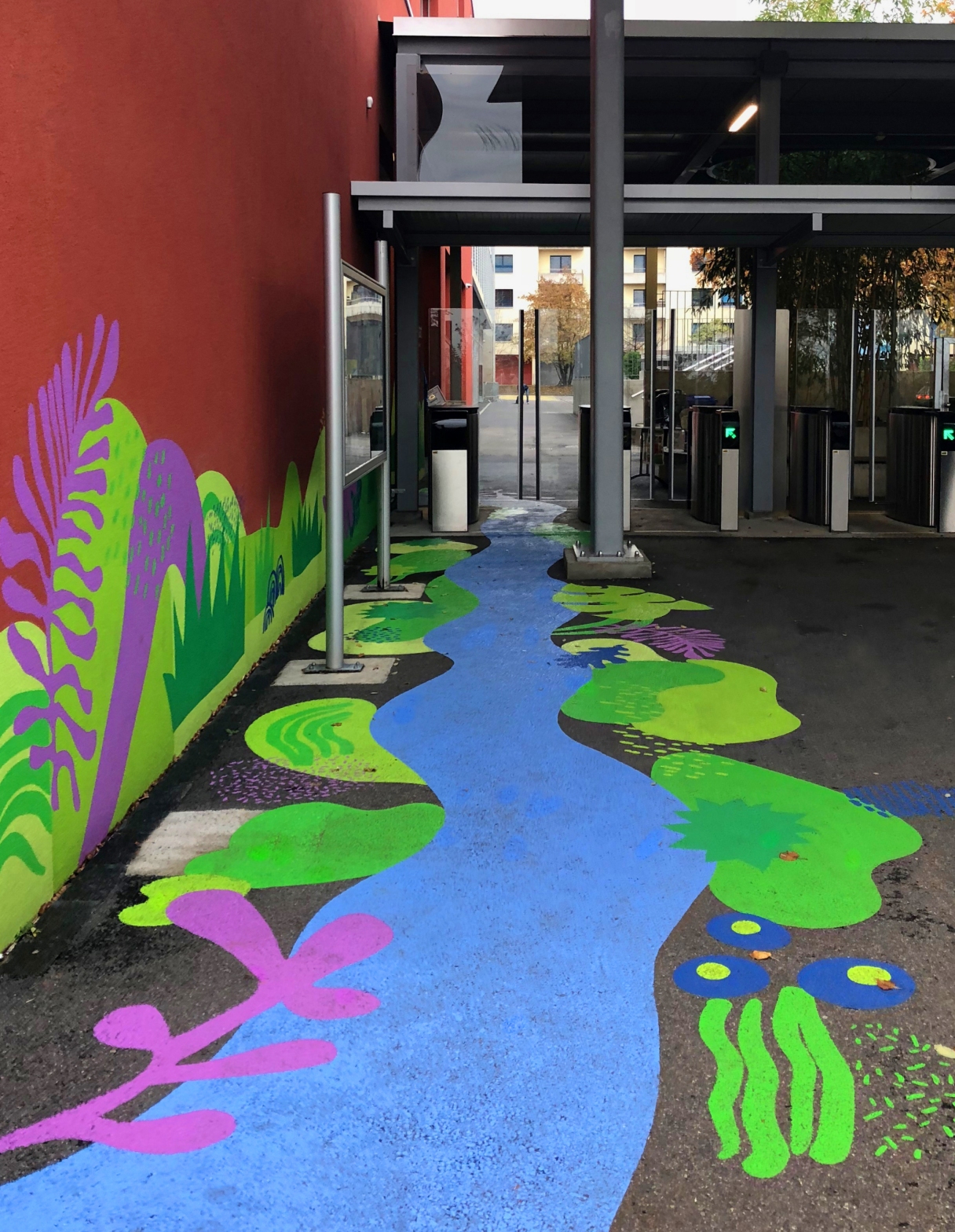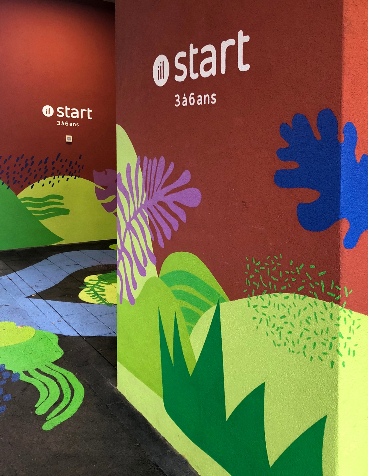 L'institut International de Lancy repense de manière colorée et féerique l’espace scolaire dédié aux élèves de 3 à 6 ans suivant le programme "IIL Start". Le parcours scénographié commence à l'extérieur du bâtiment, le ruisseau nous guide dans un univers coloré jusqu'à l'entrée de l'école. Des arbres rythment le couloir principal et créent une atmosphère magique pour les jeunes élèves.