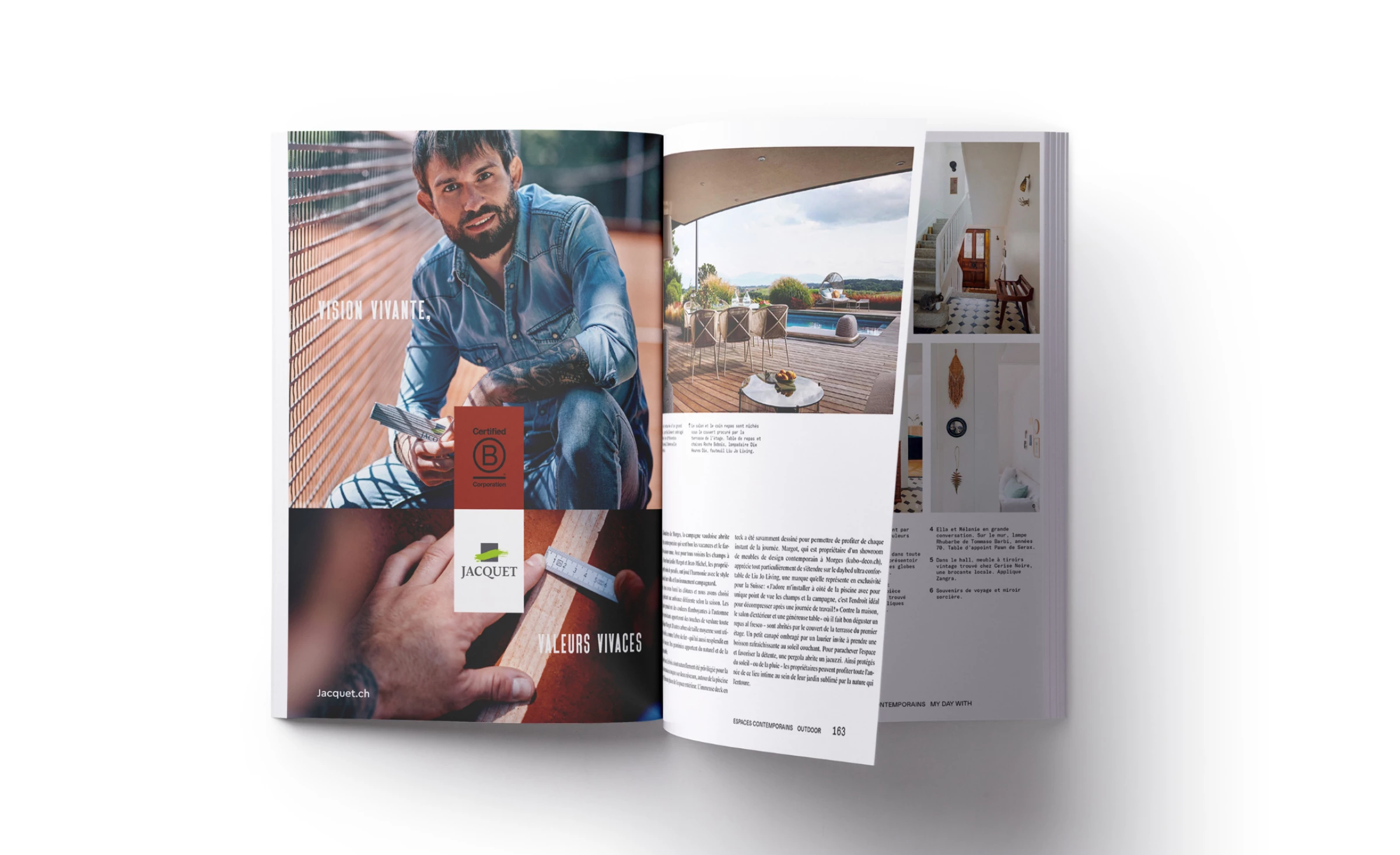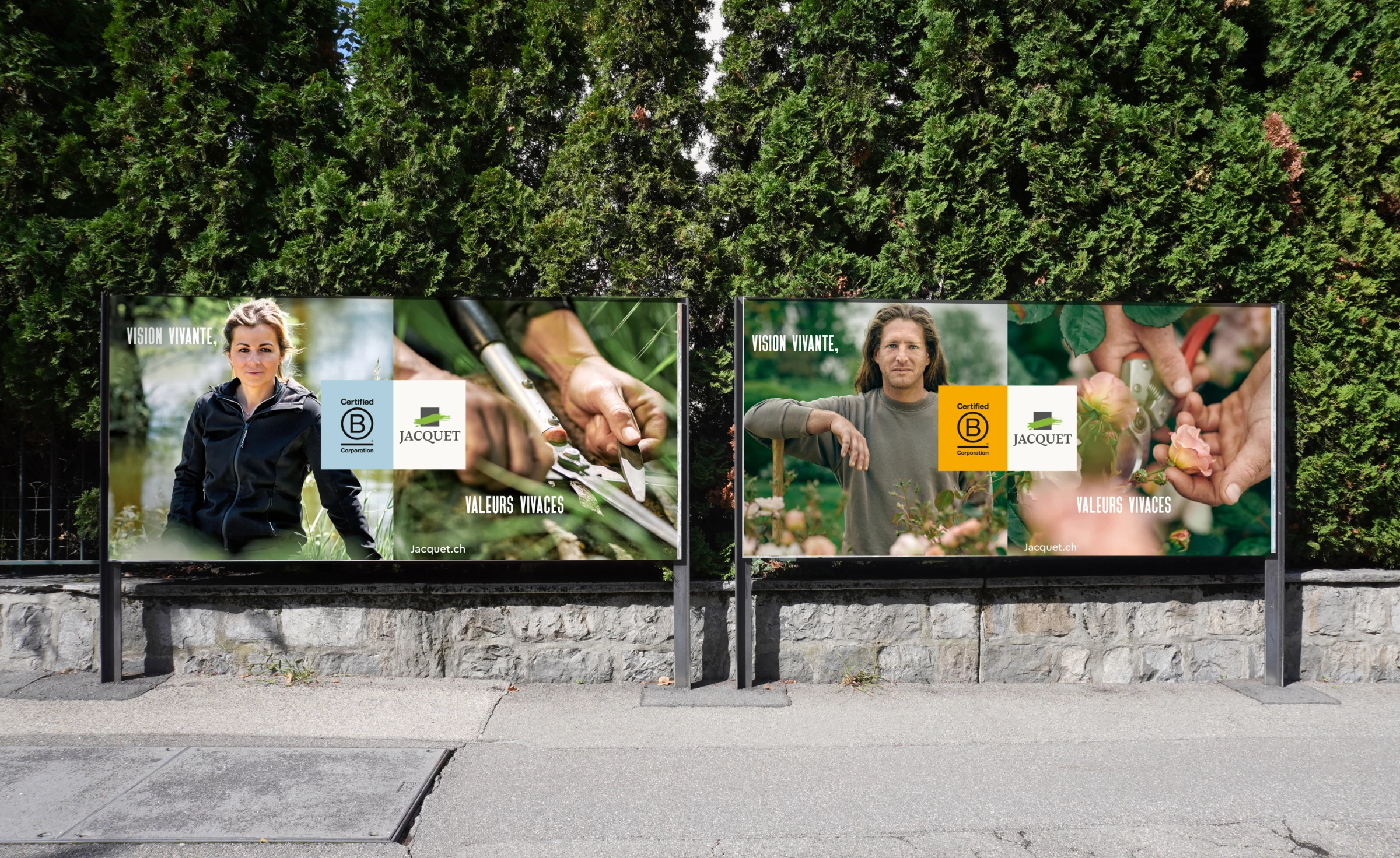 Dans toutes ses activités certifiées B-Corp, Jacquet SA met en œuvre les meilleures pratiques en matière de durabilité et de responsabilité sociale. Au travers de cette campagne nous accompagnons l’entreprise dans son engagement proactif et continue à améliorer ses processus afin de répondre aux évolutions des besoins écologiques et sociaux. Jacquet SA se consacre à promouvoir une vision globale des actions en faveur de l'environnement et du bien-être des personnes, tant dans les aménagements publics que privés.