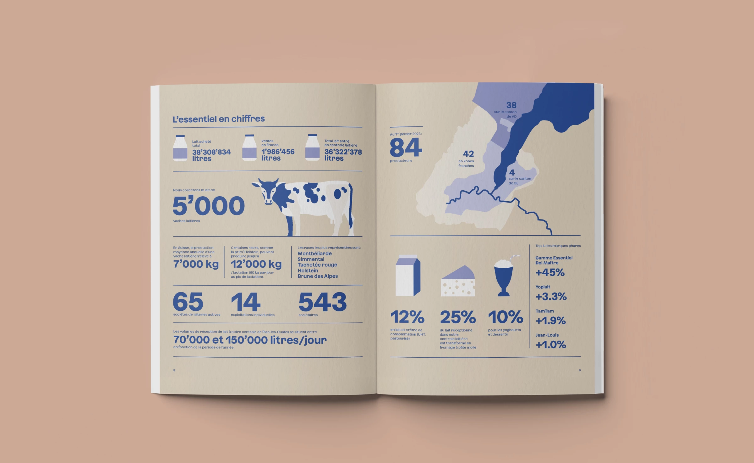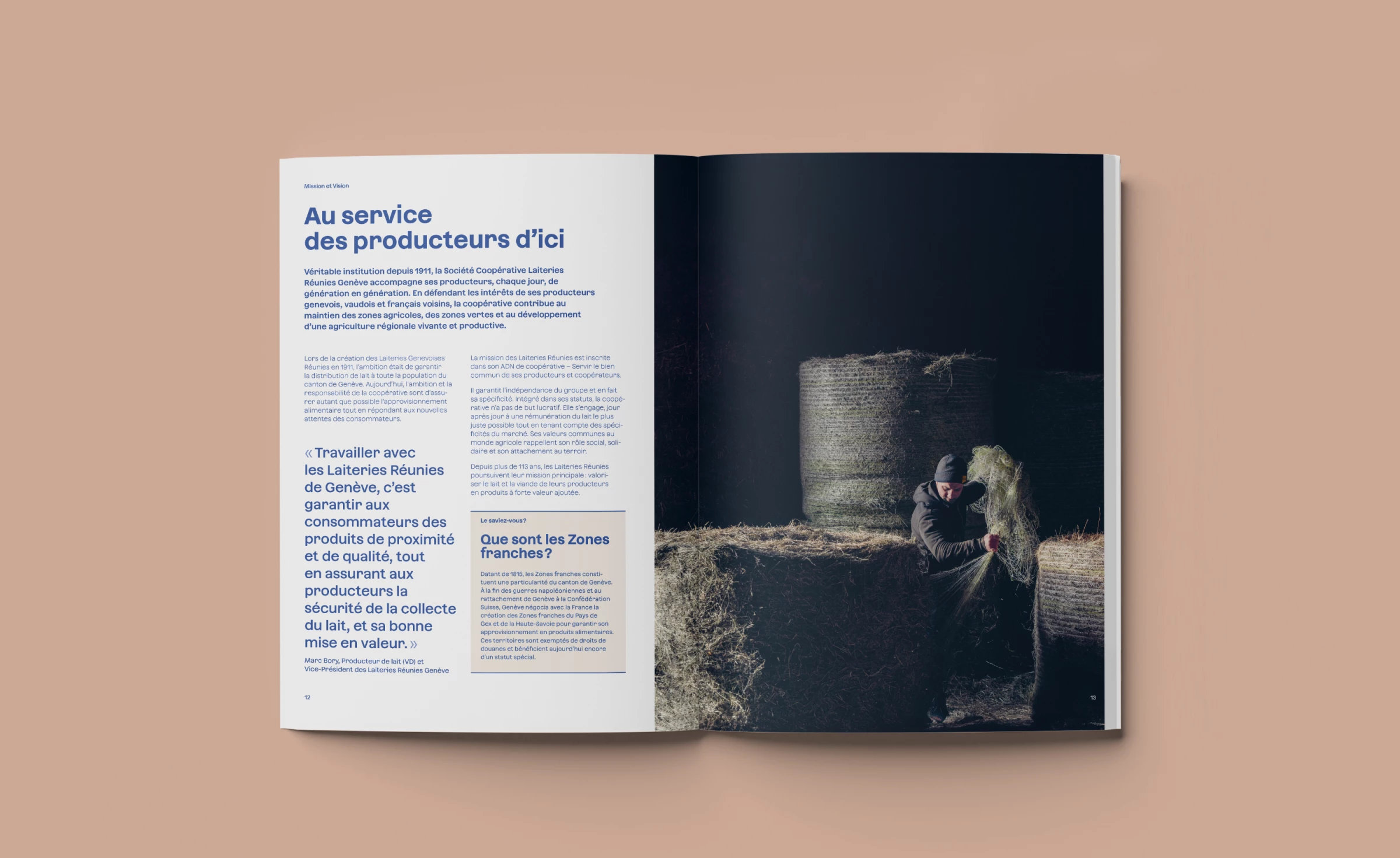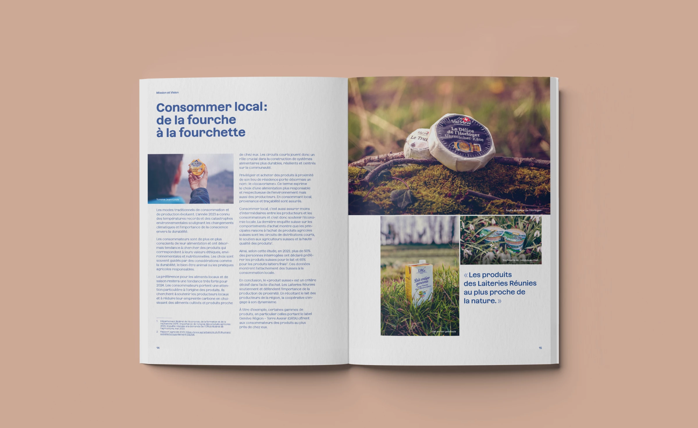 La volonté des Laiteries Réunies de Genève était de changer la posture du rapport annuel et passer d’une image industrielle à une démonstration d’acteur responsable, en phase avec son temps, qui fait le lien entre le monde paysan et le consommateur final. Il s'agissait donc de refaire un déoupage éditorial, créer une nouvelle ligne graphique et iconographique en lien avec la nouvelle posture.