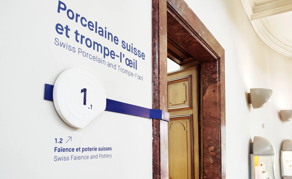 Une signalétique en céramique pour le musée des arts du feu! Le Musée Ariana abrite une collection exceptionnelle de céramique, de verre et de vitrail, comptant plus de vingt-cinq mille objets. Ces pièces illustrent douze siècles de culture des arts du feu, depuis le Moyen Âge jusqu'à la création contemporaine, en Suisse, en Europe, au Proche-Orient et en Extrême-Orient.