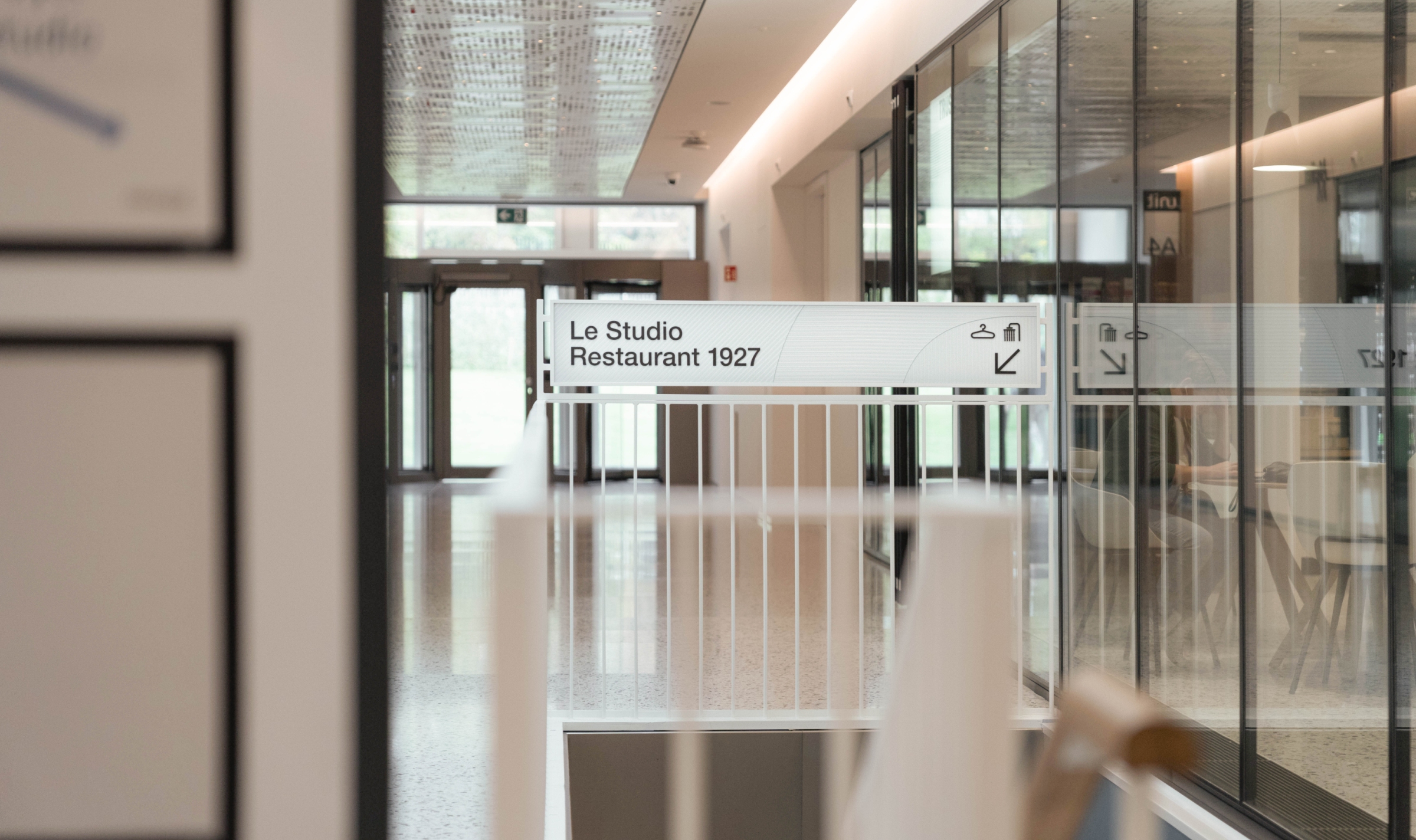 Notre agence a été retenue pour concevoir la signalétique de ce vaste ensemble qui comprend quatre immeubles reliés par un couloir intérieur appelé « la rue » . Nous nous sommes inspirés de ce concept architectural et des matériaux des bâtiments pour concevoir une grammaire visuelle particulièrement sensorielle. Des textures cannelées de verre acrylique sont juxtaposées pour créer des compositions aux opacités et aux rythmes variés.