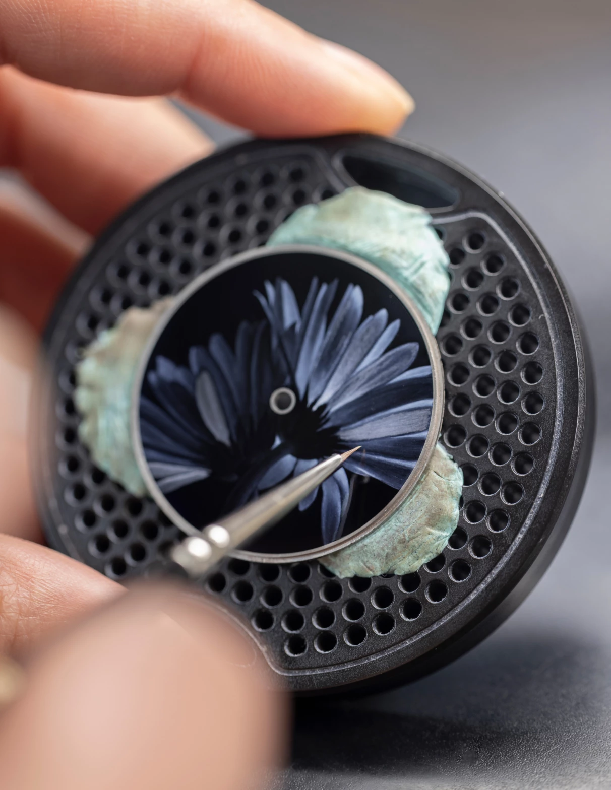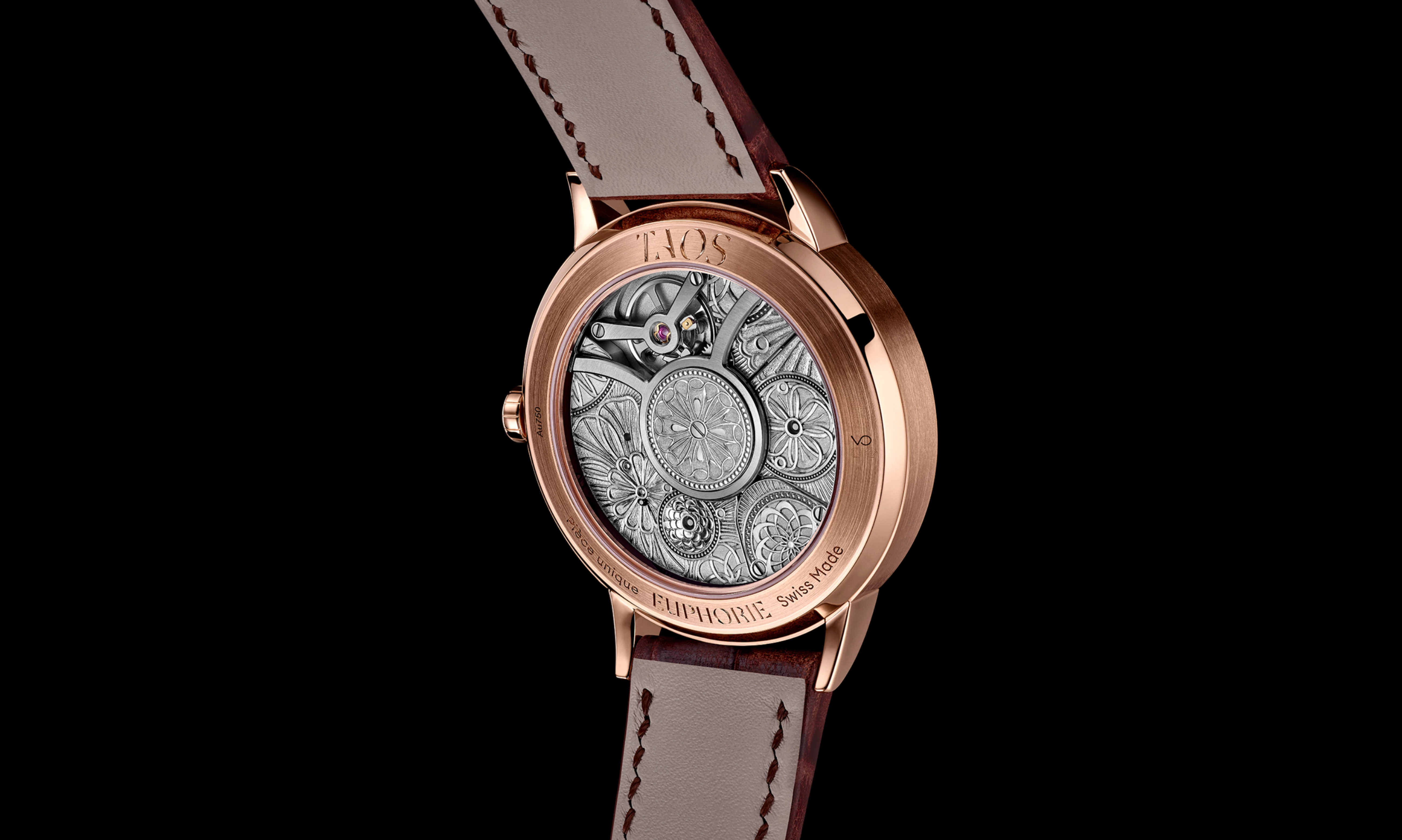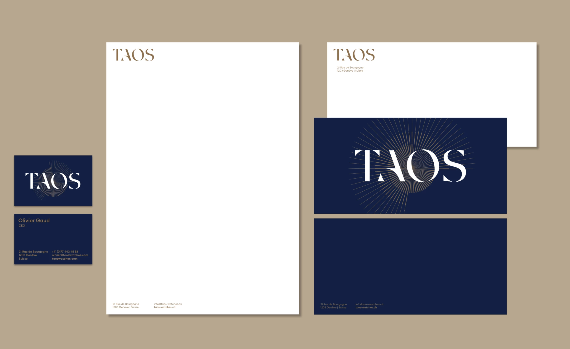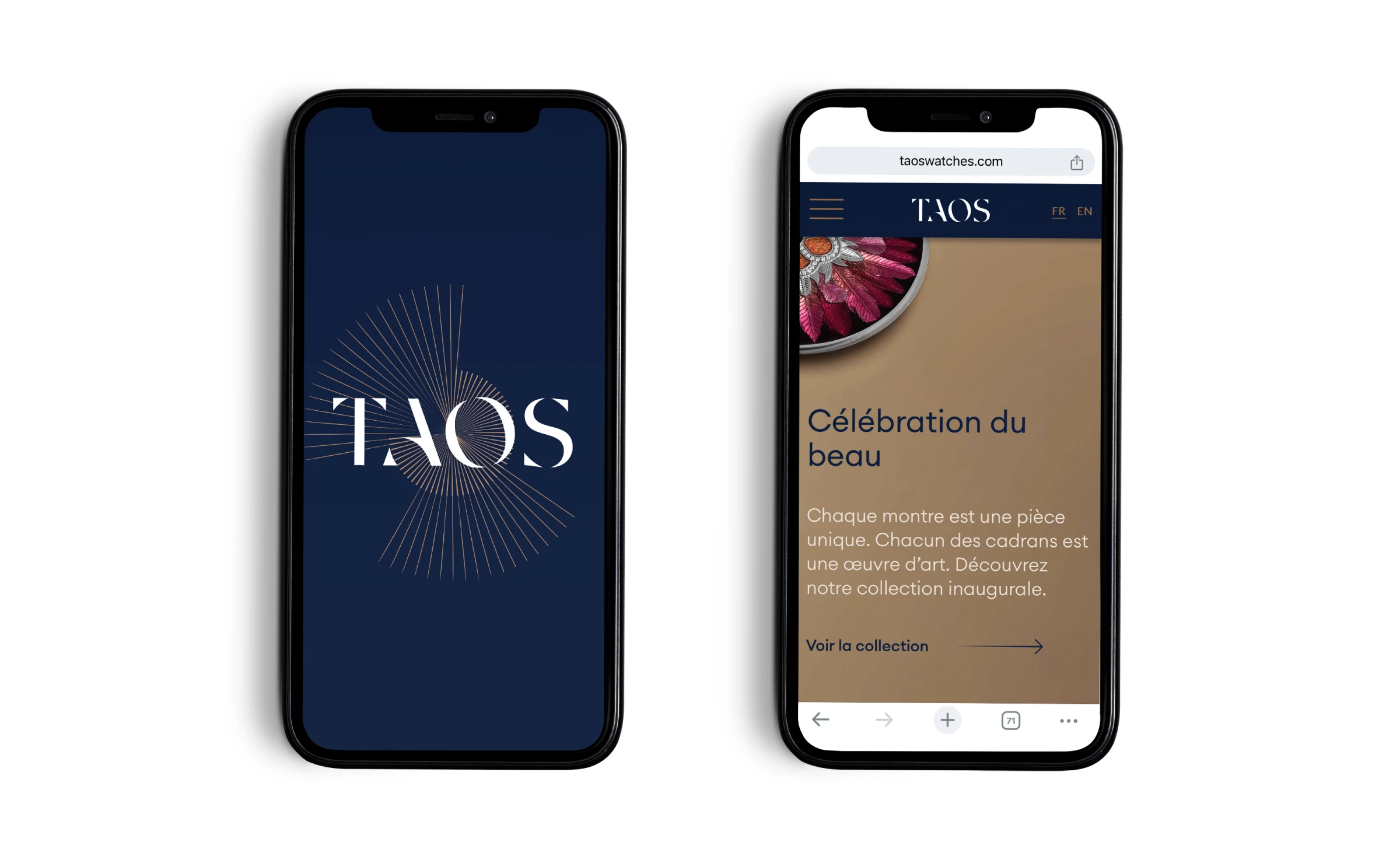 TAOS désigne le paon en grec ancien. Ce nom de marque, proposé par l’agence, nous semblait parfaitement adapté à une vision horlogère novatrice, tournée vers la création originale et l’artisanat d’excellence. Tout comme le paon déploie sa chatoyante beauté en faisant la roue, TAOS se distingue sur le marché par des cadrans d’une splendeur hypnotique et des mouvements finement ornementés à la main. Six pièces uniques qui sont de véritables œuvres horlogères, conçues et réalisées en Suisse par l’élite des maîtres artisans.