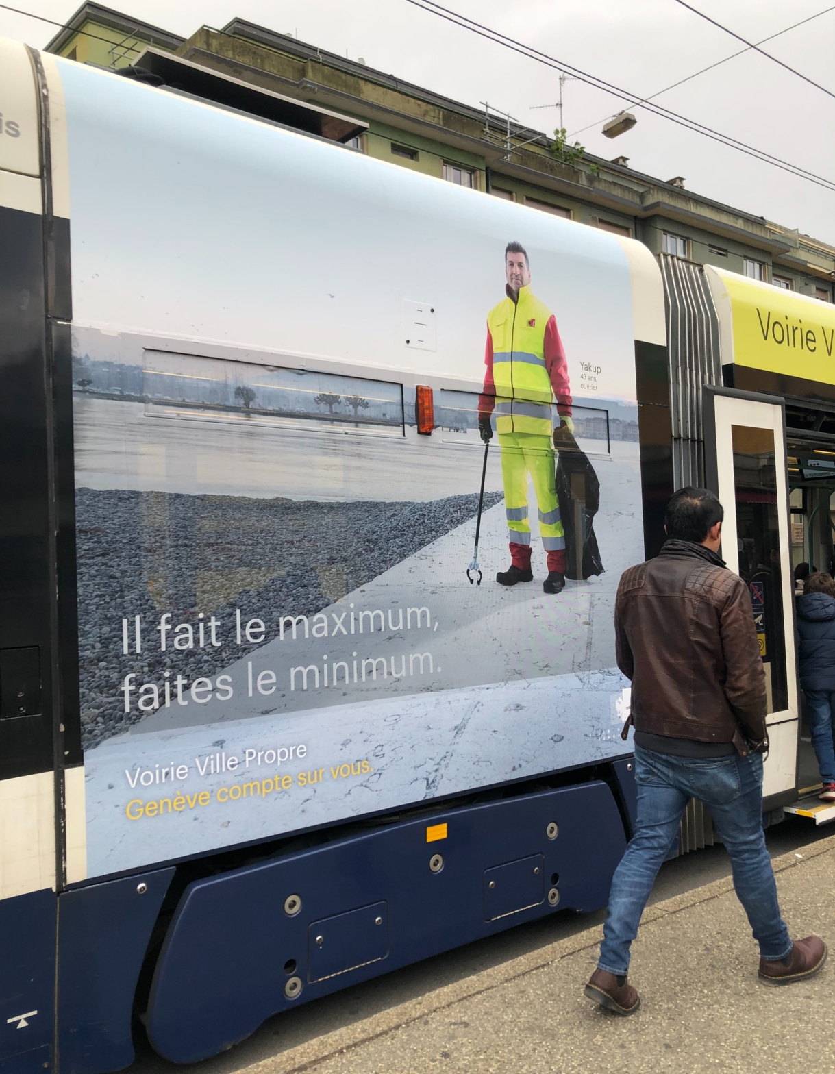 La campagne met en scène ces femmes et ces hommes, qui font chaque jour leur maximum pour conserver un espace public propre, invitent la population à effectuer un minimum : utiliser les poubelles à disposition plutôt que des jeter les déchets par terre. Elle a été déployée par voie d’affichage, de vidéos, d’annonces presse ainsi que sur les réseaux sociaux. Une exposition photographique vient nourrir la campagne en donnant la parole à 12 employé-e-s de la Voirie genevoise dans de beaux portraits intimistes au cœur des quartiers.