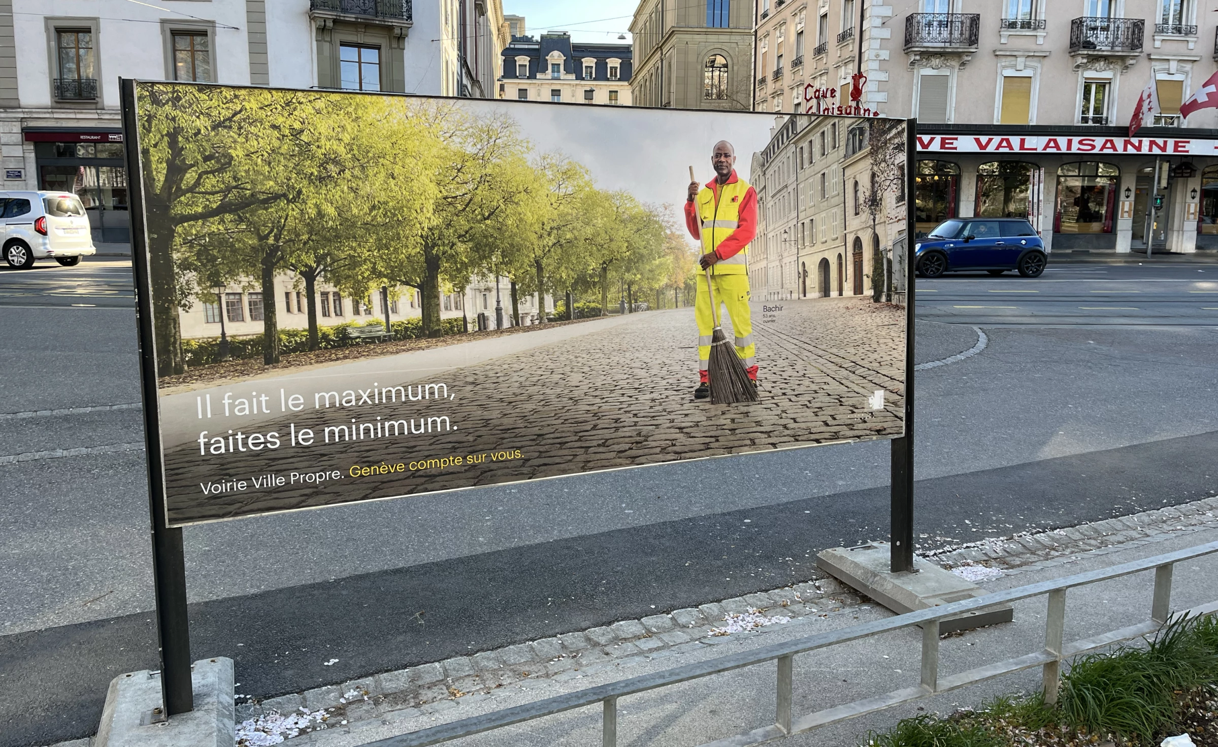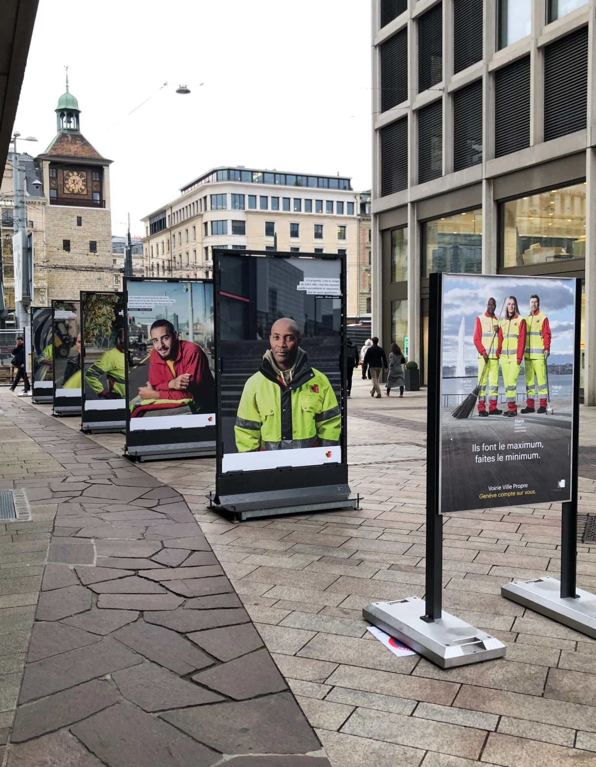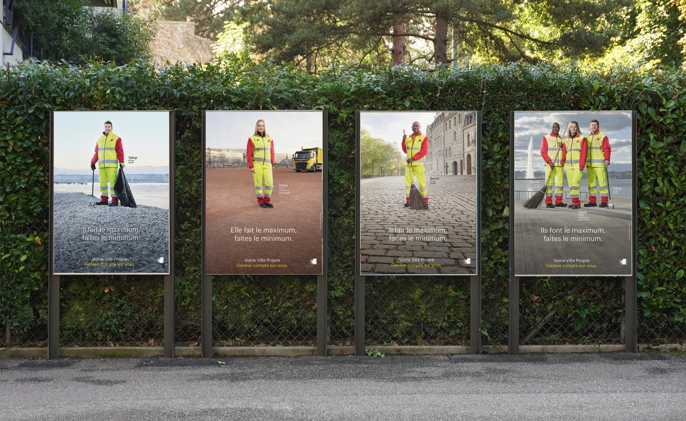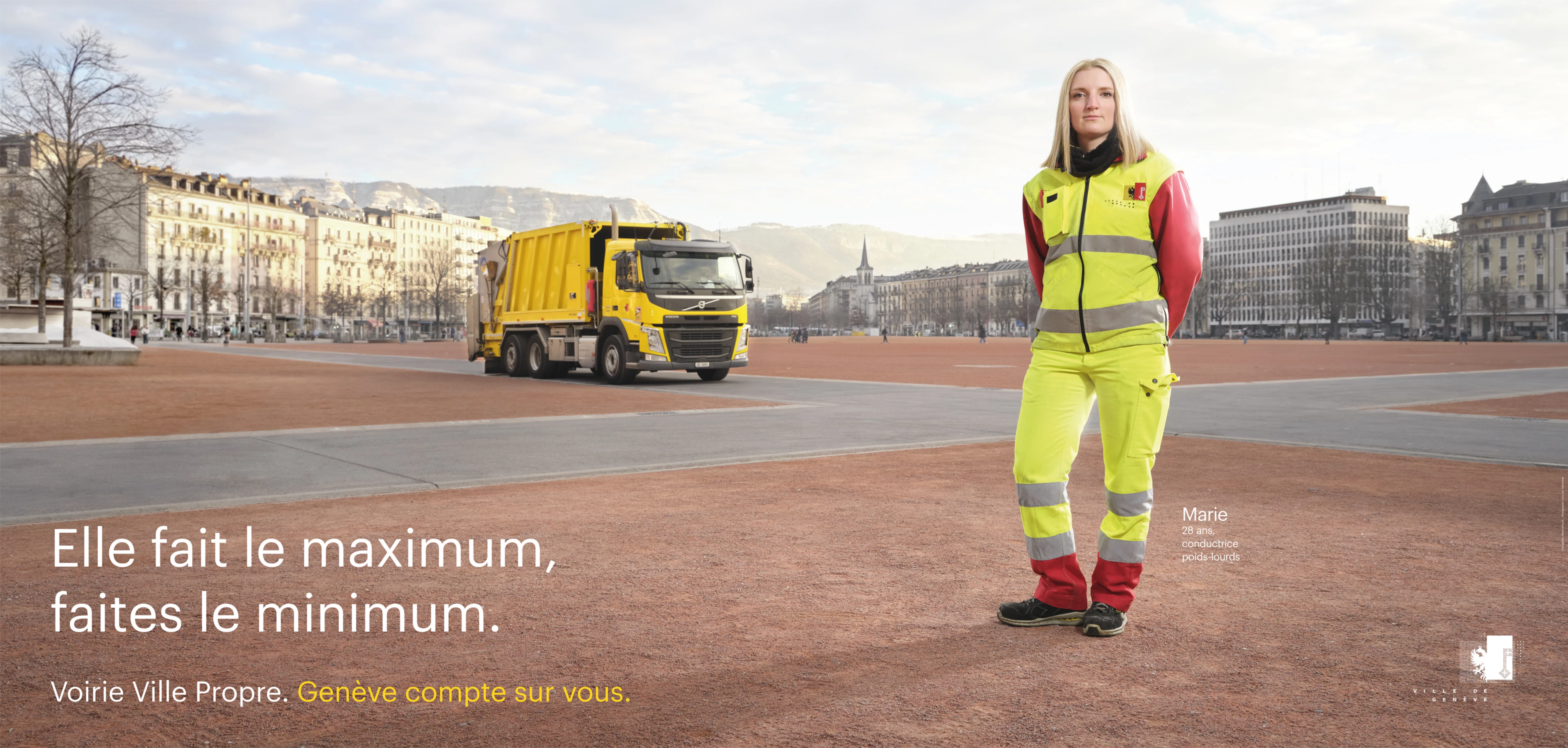 La campagne met en scène ces femmes et ces hommes, qui font chaque jour leur maximum pour conserver un espace public propre, invitent la population à effectuer un minimum : utiliser les poubelles à disposition plutôt que des jeter les déchets par terre. Elle a été déployée par voie d’affichage, de vidéos, d’annonces presse ainsi que sur les réseaux sociaux. Une exposition photographique vient nourrir la campagne en donnant la parole à 12 employé-e-s de la Voirie genevoise dans de beaux portraits intimistes au cœur des quartiers.